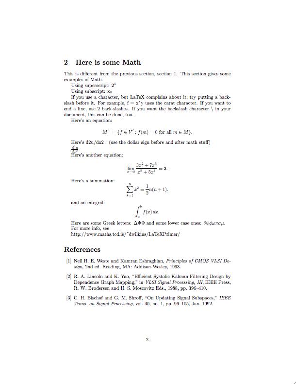 This is a simple page showing a LaTeX example. I recommend using LaTeX